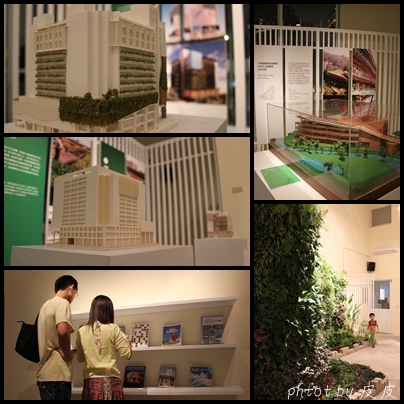 內部展覽則是由archicake規劃.展覽主題為Archi-Green綠色建築與綠建築的對話.分別展出勤美誠品綠園道興建故事及精選綠建築作品(北投圖書館).