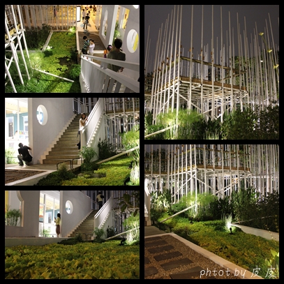 周圍由兩千根白色孟宗竹所包圍.場地內為兩側的草坪區與中間的鋪面(好像巧拼喔).