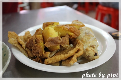 炸得恰到好處.好吃極了.愛吃順序為:大腸>炸地瓜>黑輪.