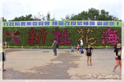 步入會場.映入眼廉的是盆花拼湊而成的新社花海字樣.