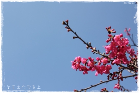 看到藍天下綻放的討喜的桃紅色花朵.一整個就很有喜氣的感覺.