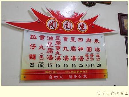 肉圓生的餐點項目很簡單.價目表簡潔明白.