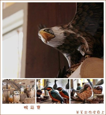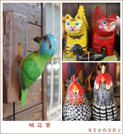 圖右:除了木鴨.也有貓咪.雞等等木雕藝品.
