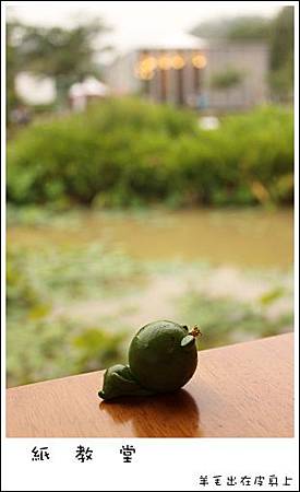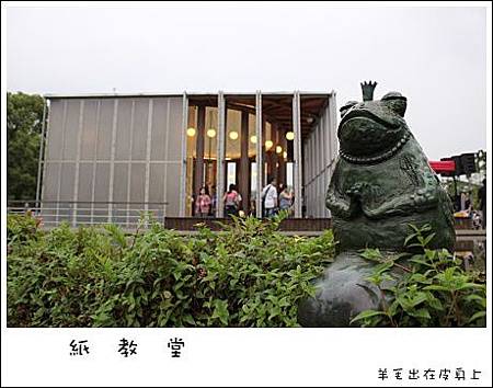 步出紙教堂.池畔坐著的祁福蛙.也在為這世界祁福.