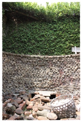 這就是正港的蚵灰窯.館內展示著蚵殼如何經過窯燒程序燒成灰.