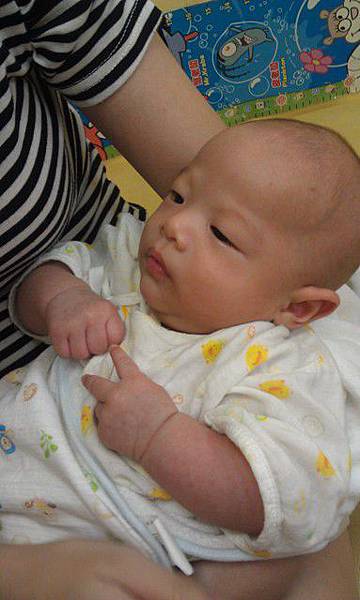 所以又繼續親餵.邊請老媽幫他用濕紗布巾在頭上擦一下.