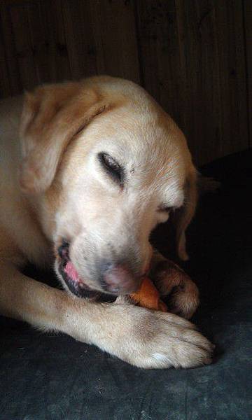 不過這支號稱是碳燒口味的牛皮骨顯然很對牠的味.
