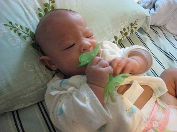 一來覺得小飯糰的手手已經可以抓握得不錯(超愛抓衣服或媽咪的枕頭).