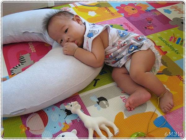 (話說回來.現在一直盼著他會爬.但等他爬得很好時.再也控制不了活動範圍時.反倒會懷念現在活動力有限的階段吧.媽媽的心思真矛盾)