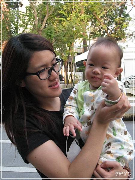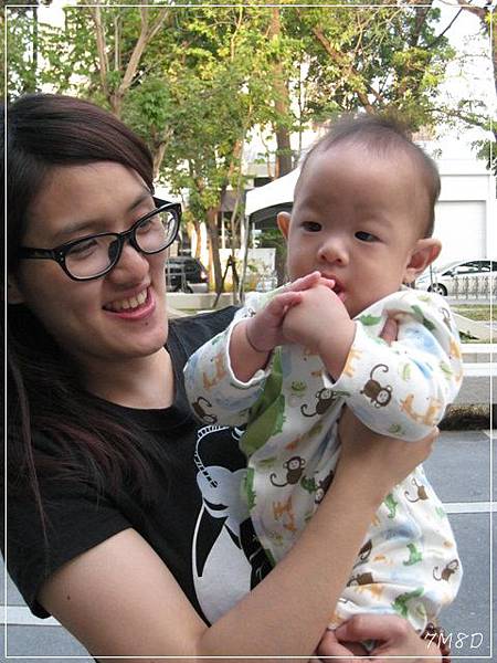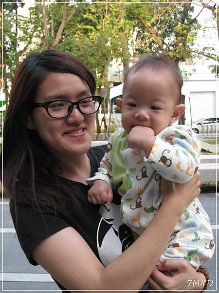 喝飽後.玟玟抱著小飯糰散步.小飯糰多開心啊!
