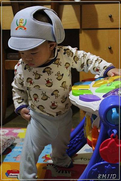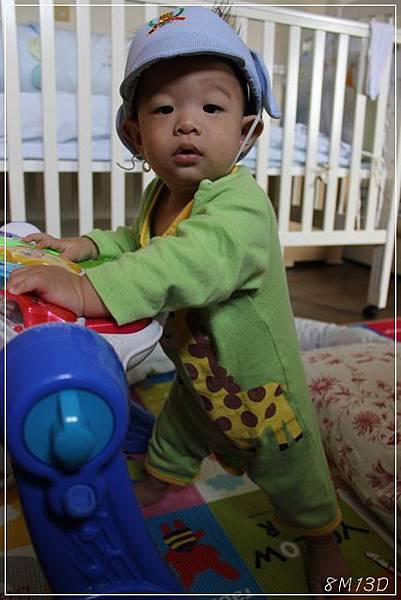 小飯糰現在玩耍時幾乎都戴著安全帽.在作好安全防護的狀況下讓他去摔.去跌.