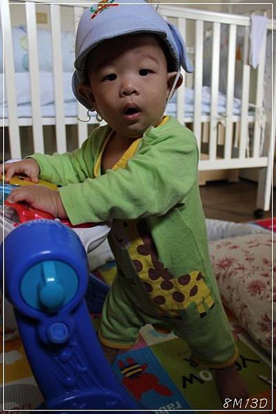 小飯糰愈來愈愛站.打從會自己扶著站起來後就不愛爬了.