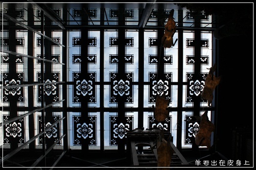 瞧瞧那高聳又華美如塔的書櫃實在震攝人心.搭配著透光的縷花屋頂.真是迷人~