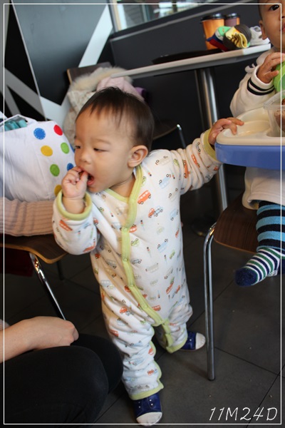 明明吃完粥了才去聚會.看游游吃麵包又搶著吃!!!