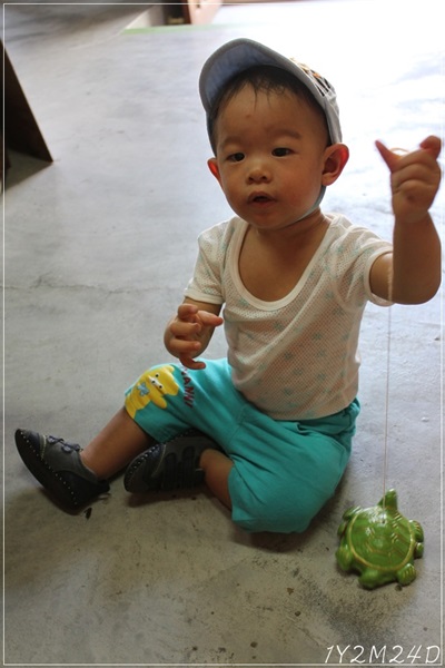 小飯糰手中牽著的那隻龜.就是店主人拿出來的古早童玩啦~