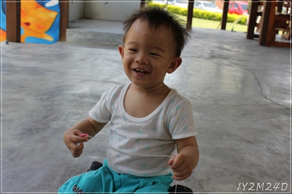而且這小子隨意坐到處爬.玩得開心的很.事後洗褲子好累啊!!