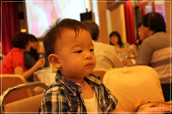 喜帖上寫6點開席.小飯糰午覺還沒睡夠就被挖起來出門.