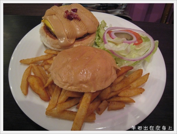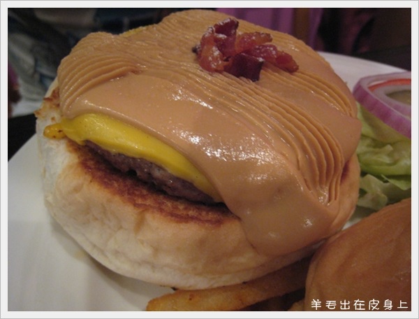 牛肉堡端上桌來時讓我們大點小失望.感覺沒有想像中大.