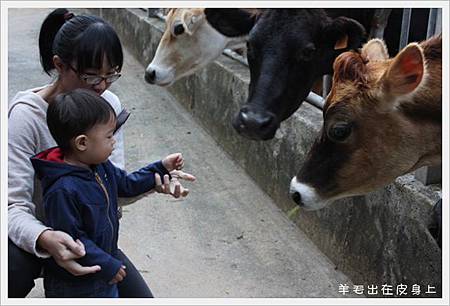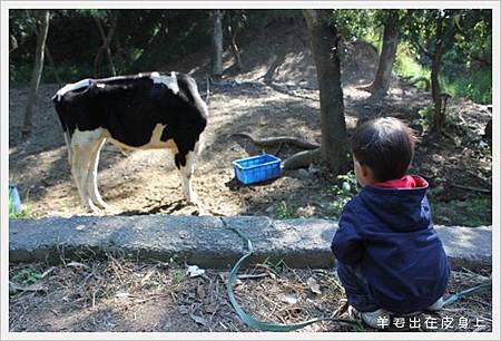 對牛牛很有興趣.可惜牛牛只顧著抓癢?!完全都不轉頭...直到小糰看夠了要走了.才把頭轉回來.