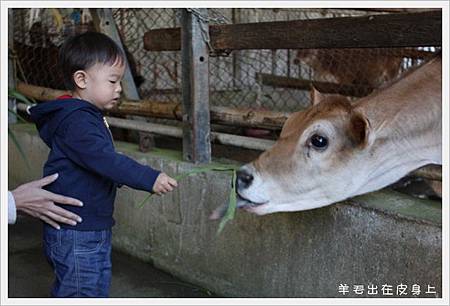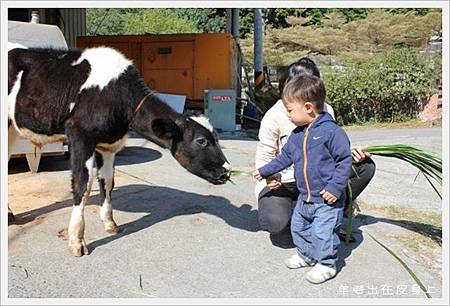 雖然是小牛.但比起小飯糰.還是足足大好多啊..倒是姐姐很擔心他被牛牛推倒或撞倒XD