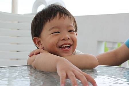 等待餐點上桌時.小飯糰被玟玟逗得好開心~