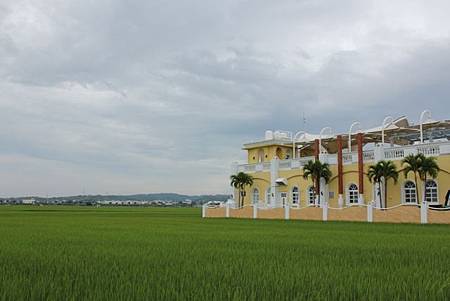 位於田中央的黃色歐風建築很亮眼.非常漂亮.