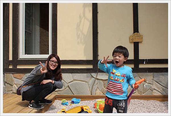 不過真的是因緣湊巧.前一日原本還說要去苑裡的.夜裡爸比意外看到青松自在餐廳多了沙坑.臨時就變心來這裡了XD