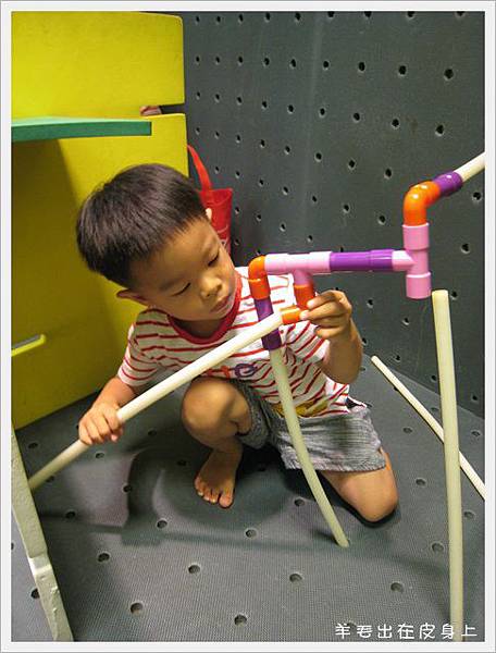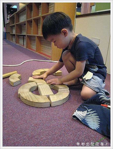 專心在積木區裡搭停車場XD