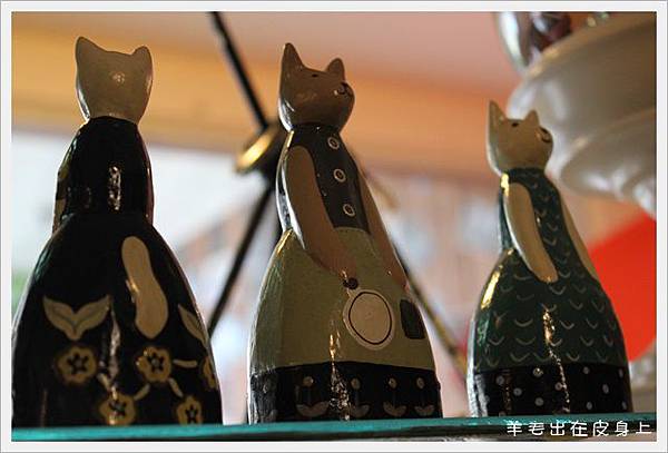 店裡有隻漂亮灰黑花貓.就連店內擺設都可見貓的踪影.很喜歡這3尊小巧可愛又優雅的貓夫人