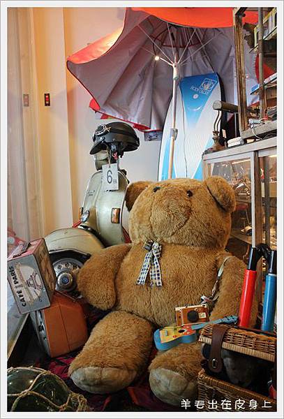 店門口向外的櫥窗內擺放著大熊.還有各式新舊雜貨.繽紛熱鬧.