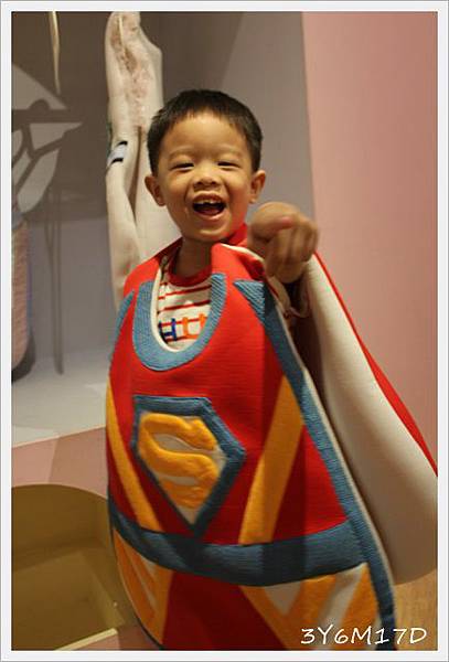 居然還有超人裝可以套.好有趣.女生好像是公主裝(忘了長什麼樣子).但因尺寸較適合幼兒園階段孩子.粉圓沒得穿啦