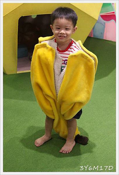 小飯糰個兒小.香蕉垂在地上怪怪的.等大一點再穿應該會更可愛