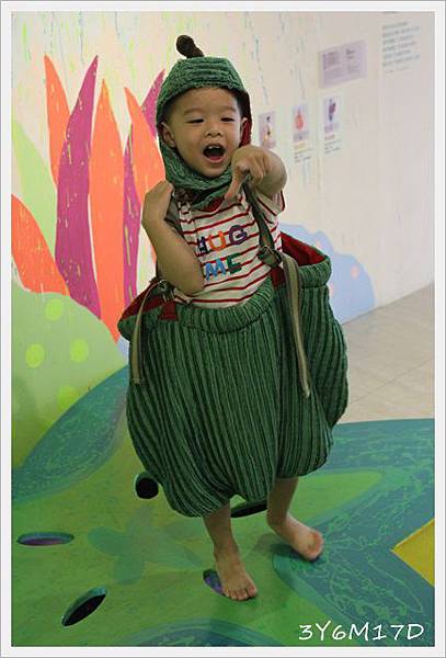 202展覽室的志工很熱心.見我們研究香蕉裝如何套上身.就主動上前來指導及協助飯糰穿上.