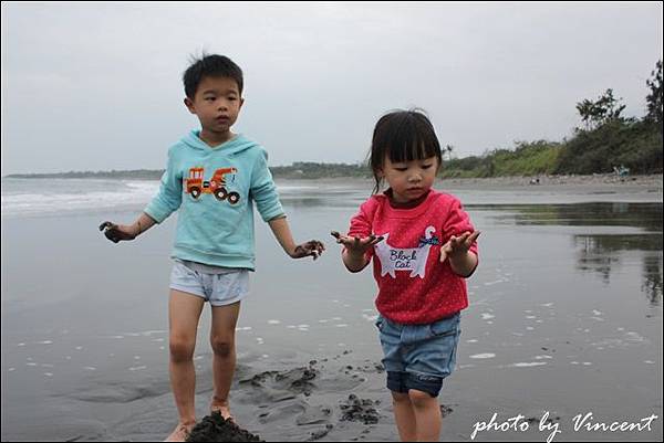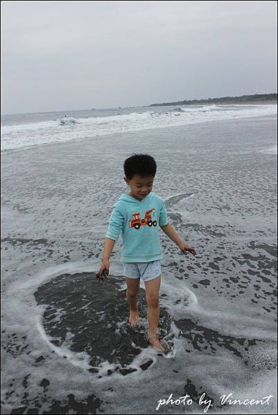 初次踏上沙灘的小粉圓初時還有些畏懼.後來習慣了也就甚為好玩.