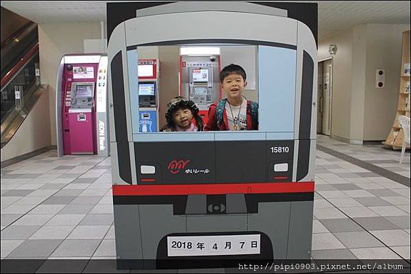 吃完飯糰後.上2樓走空橋至單軌電車站.不免俗地一定要來張觀光客照![]()