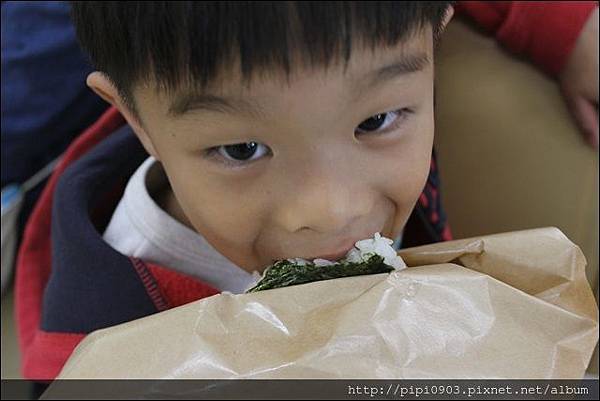 小飯糰吃不慣午餐肉,吃了幾口就挑出來給爸比加料XD