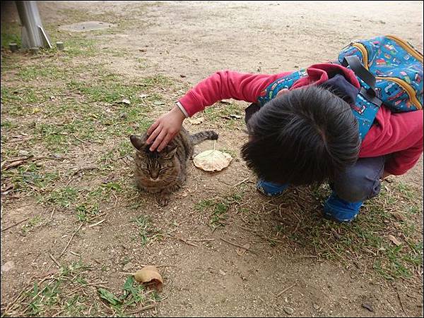 離開公園時遇見不怕生的小貓.還願意讓飯糰摸頭![]()