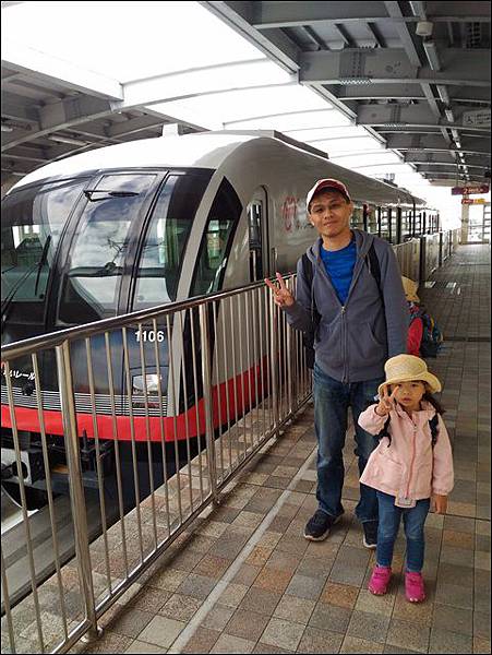 離開飯店走至單軌車站搭車.很幸運司機後方還有一個空位.2小興沖沖地跑進去坐.原已坐在位子上的婆婆也很客氣地挪出來一些.讓2小能坐寬敞些.