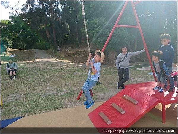 *除了滾輪滑梯好玩.這個溜索也是讓小飯糰很愛的遊具(果然是野猴子來著)