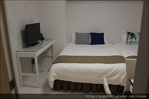 因為是雙人床+單人床的組合吧.房內空間比較小.我們22吋行李攤開就沒有什麼空間了.