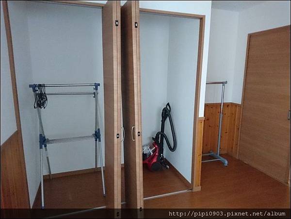 衣櫥裡有曬衣架.可以搬到陽台使用.超方便.各式衣架都有.夠一家子用啦