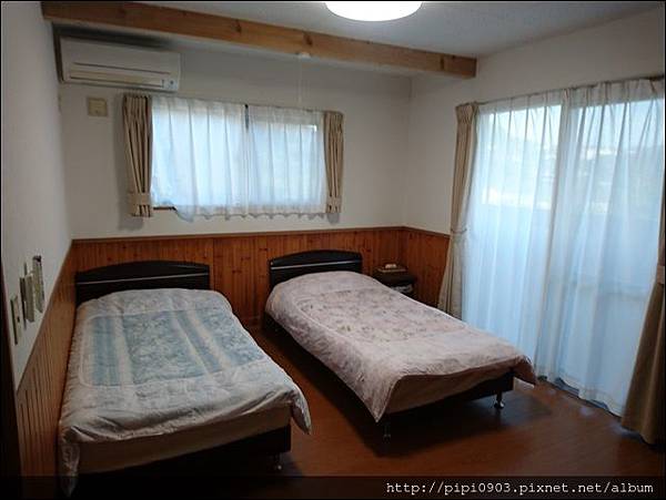 *主臥是2張單人床.1大1小擠一張剛好.床睡起來還算舒適.枕頭軟.被子輕薄蓋起來也沒有很暖的感覺.