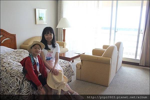 領了房間鑰匙.在大廳等爸比停好車來會合後就搭電梯上樓.