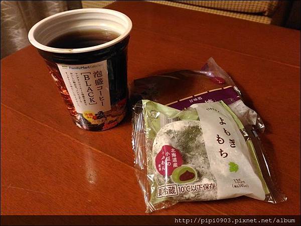 倒是買來配咖啡的抹茶麻糬不錯吃耶.軟Q不甜膩.另一個銅鑼燒則進了游泳完肚子很餓的小飯糰肚子裡.