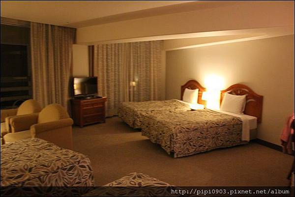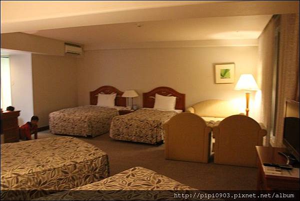 *不愧是傳說中的超大轉角房.房間大到不說.居然有4張大單人床.還有超大陽台(尖叫)