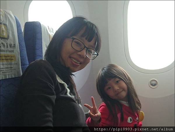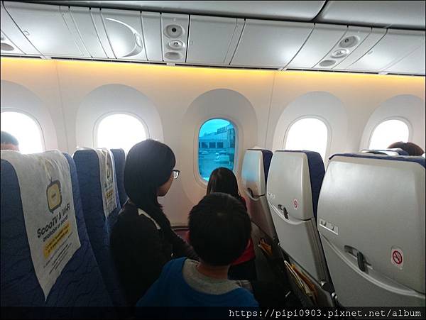 機艙很寬敞.座位是3/3/3.我們沒有花錢選位.但很幸運地被排在一起.