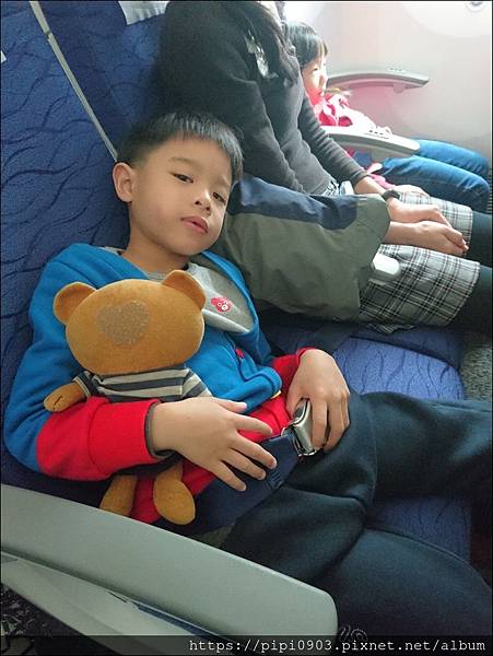 小飯糰還帶了好朋友小熊一起搭機.陪他度過午休時光.