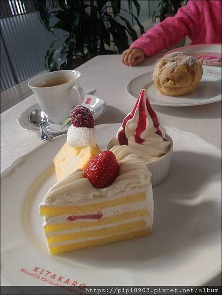 很沒創意地照著MENU示意圖挑了草莓蛋糕(冬季必吃)及戚風蛋糕(感覺最不甜.安全牌).